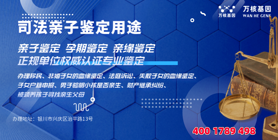 银川打官司司法亲子鉴定办理地址:银川市兴庆区治平路13号(如需办理,需提前预约)预约电话:4001789498,银川万核亲子鉴定中心的服务范围涵盖了广义的亲子鉴定、DNA验证、亲子鉴定证明等等,并且出具的司法鉴定报告可以全国通用,适合上户、法庭证据等司法类用途。
